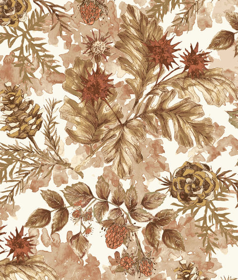 Santo Tomás is the first collection in the La Casa series, welcoming you into my home. This wallpaper and textile collection is inspired by surroundings of La Casa, from the mauntains and tall pine trees to objects part of the everyday rituals. Every design is layered with handmade watercolor illustrations translating the landscape into delicate nature, organic, and soft forms that bring the beauty of the outdoors gently inside the house.